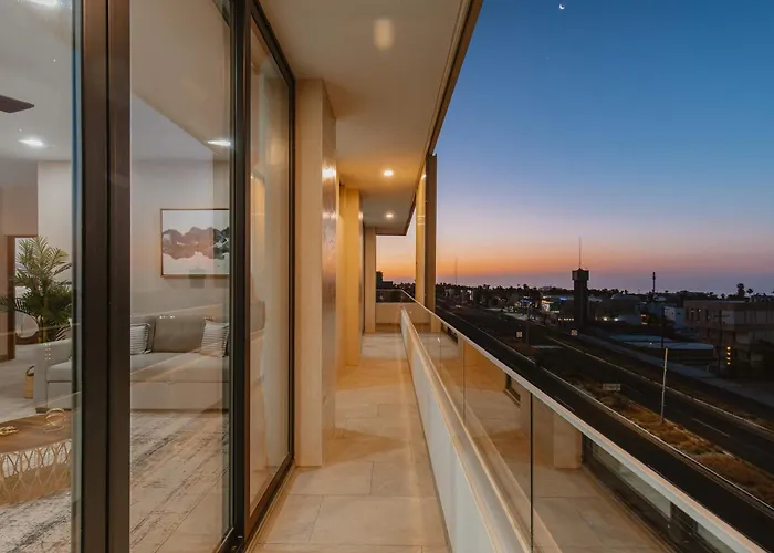O Torre San Angel Infinity Pool Arch Sunset Views Apartamento Cabo San Lucas oferece vistas para a piscina e está situado a uma distância aproximada de 25 minutos a pé de Praia Las Viudas. Os hóspedes podem aproveitar uma vista para o mar para o terraço a do terraço.